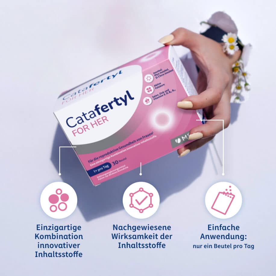 Die einzigartige Zusammensetzung von Catafertyl FOR HER gewährleistet die beste Unterstützung für die Fruchtbarkeit und den Hormonhaushalt der Frau.